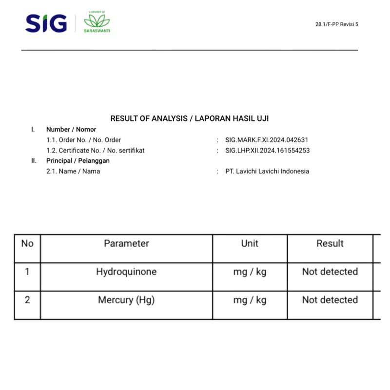 Lotion ini juga tidak hanya sebagai instant whitening tapi memiliki kandungan treatment untuk mencerahkan kulit secara permanen jika dipakai dengan rutin yaitu :