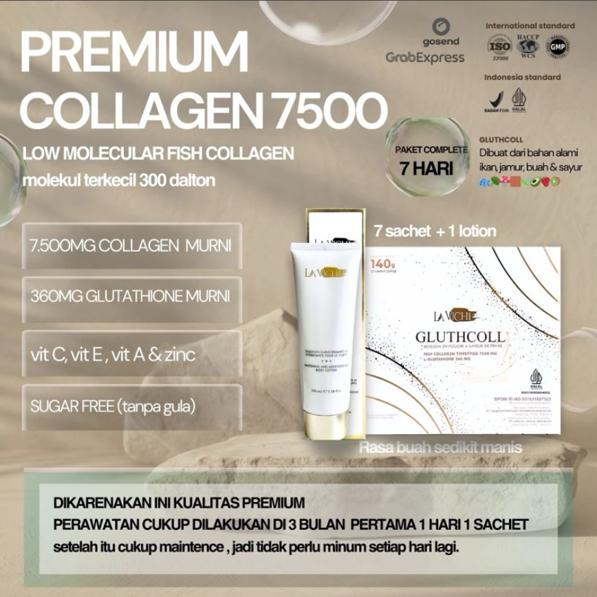 LA VICHI GLUTHCOLL disebut premium karena memiliki kandungan yang gak main-main diperhitungkan dengan baik kandungan dan batas-batas aman yang benar-benar bisa efektif bukan hanya sekedar gimmick.